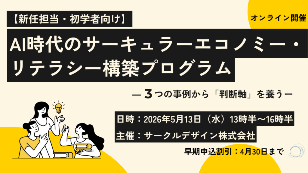 早割4/30まで【新任担当・初学者向け】AI時代のサーキュラーエコノミー・リテラシー構築プログラム ー 3つの事例から「判断軸」を養う ー