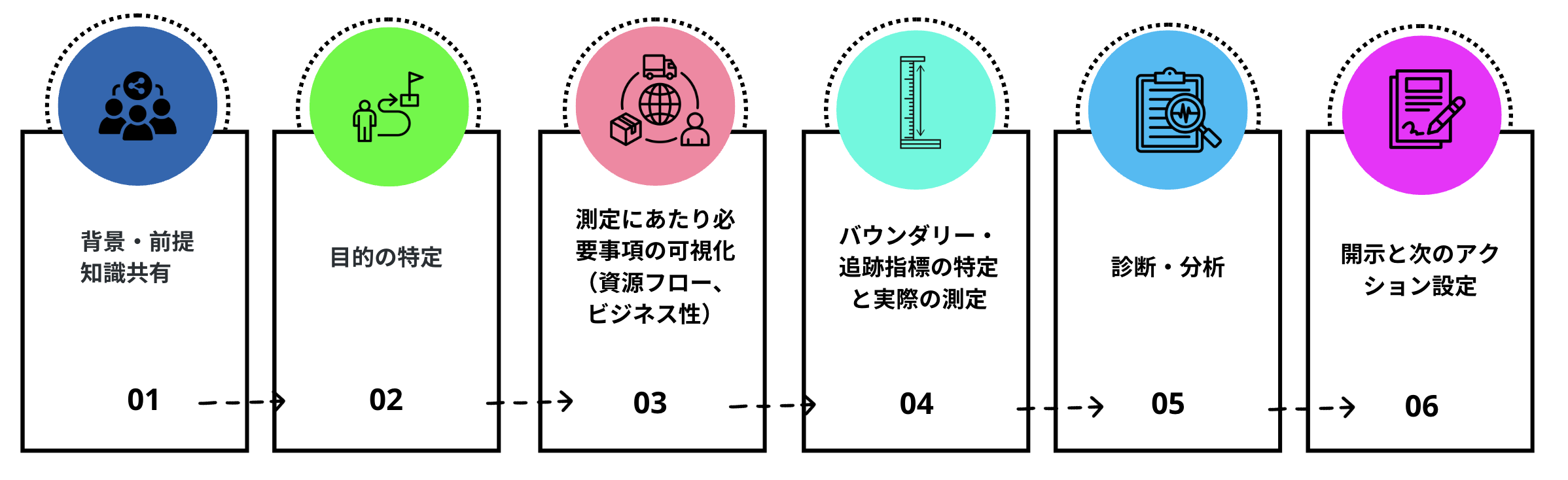 評価測定が単なる定量データ収集にとどまらないよう、経営理念(パーパス/MVV)・経営戦略・事業戦略・ビジネスモデル・PDCAサイクルへの統合や改善策の特定、より最適な循環型ビジネス構築に向けた事項の洗い出し等、測定がサーキュラーエコノミー移行を加速させるツールであるという本来の意味を持たせるための支援(測定から評価へ)もご要望に応じて行います。